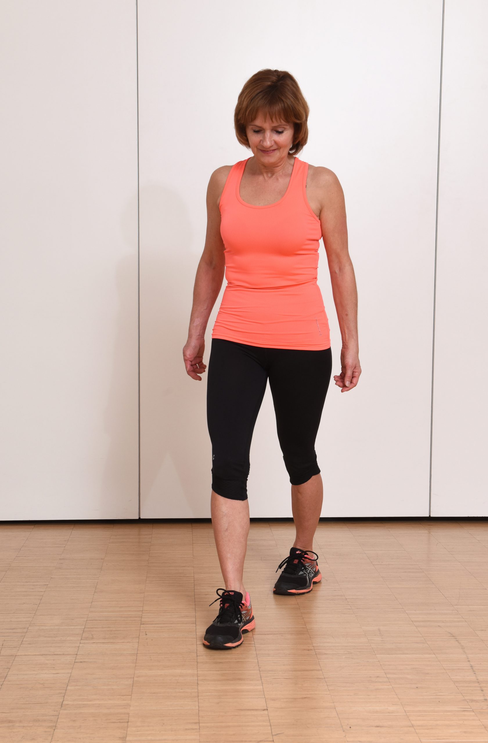 Sie starten entweder im Parallelstand oder in der Schrittstellung. Versuchen Sie nun zuvor definierte Punkte genau zu treffen, während Sie den Schritt weiter sehr langsam durchführen.